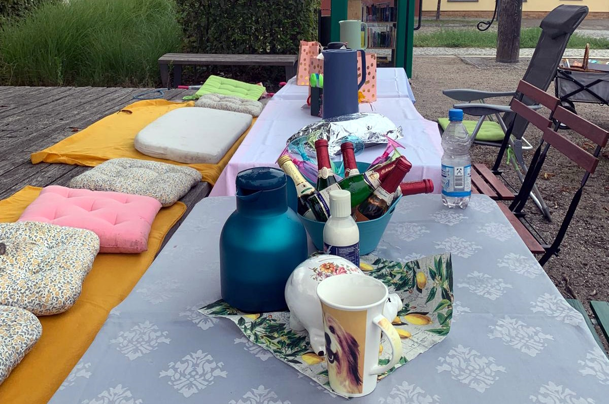 Perfekt. Pünktlich zu 15 Uhr hatte am gestrigen Freitag auch die letzte Wolke ihre Regentropfen über Kloster Zinna abgeworfen und so konnten Ute und Sybille ihre Gäste bei angenehmem Wetter an der Begegnungsstätte empfangen. Und diese kamen dann auch zahlreich zusammen und waren schnell in Gespräche mit der Nachbarschaft und Freunden vertieft. Ganz nebenbei wurde der selbstgebackene, leckere Kuchen samt Kaffee verköstigt.